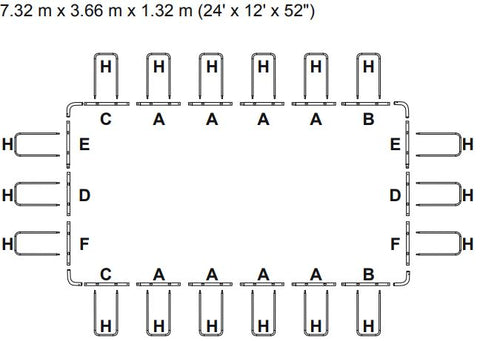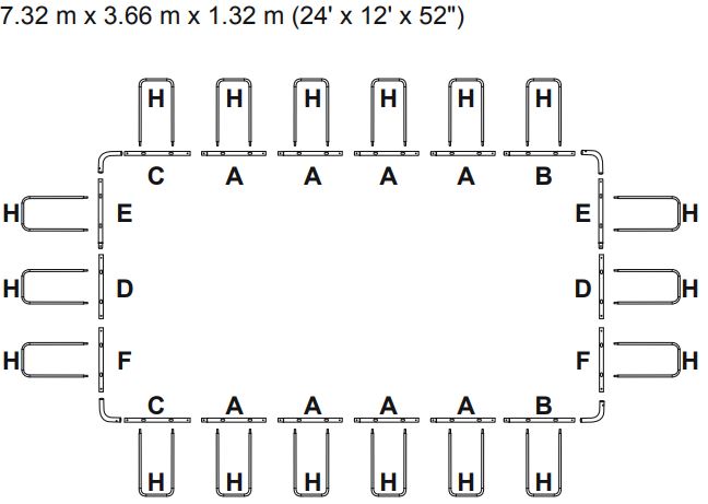 Size: 7.32 m x 3.66 m x 1.32 m (24 ft. x 12 ft. x 52 in.)