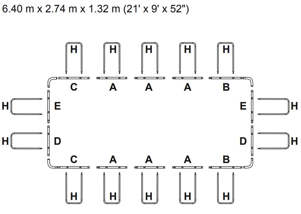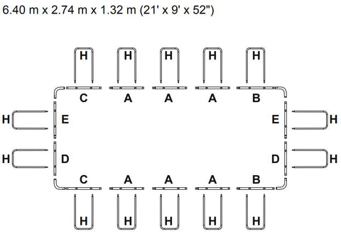Size: 6.40 m x 2.74 m x 1.32 m (21 ft. x 9 ft. x 52 in.)