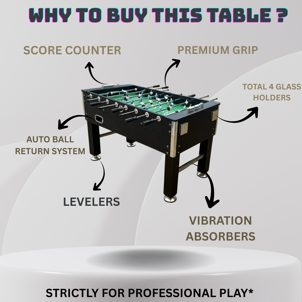 Bring home the excitement of professional-level gameplay with our high-quality foosball table, measuring 4.50 ft x 2.50 ft x 2.83 ft. Designed with precision and durability in mind, this table is ideal for schools, clubs, gaming zones, and homes across India.